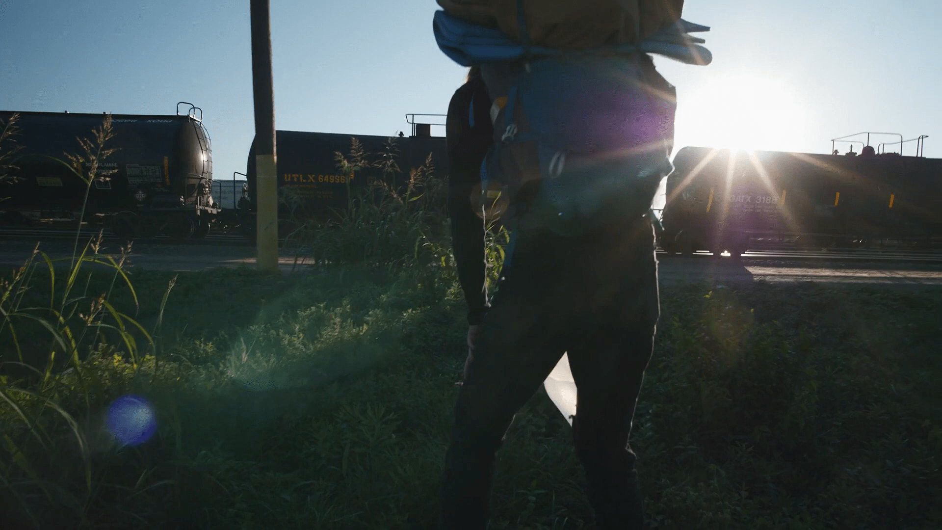 Au milieu de nulle part, le vacarme métallique d’un train de marchandises résonne. Les wagons avancent, se ressemblent et une jeune femme monte à bord et se cache entre deux conteneurs.